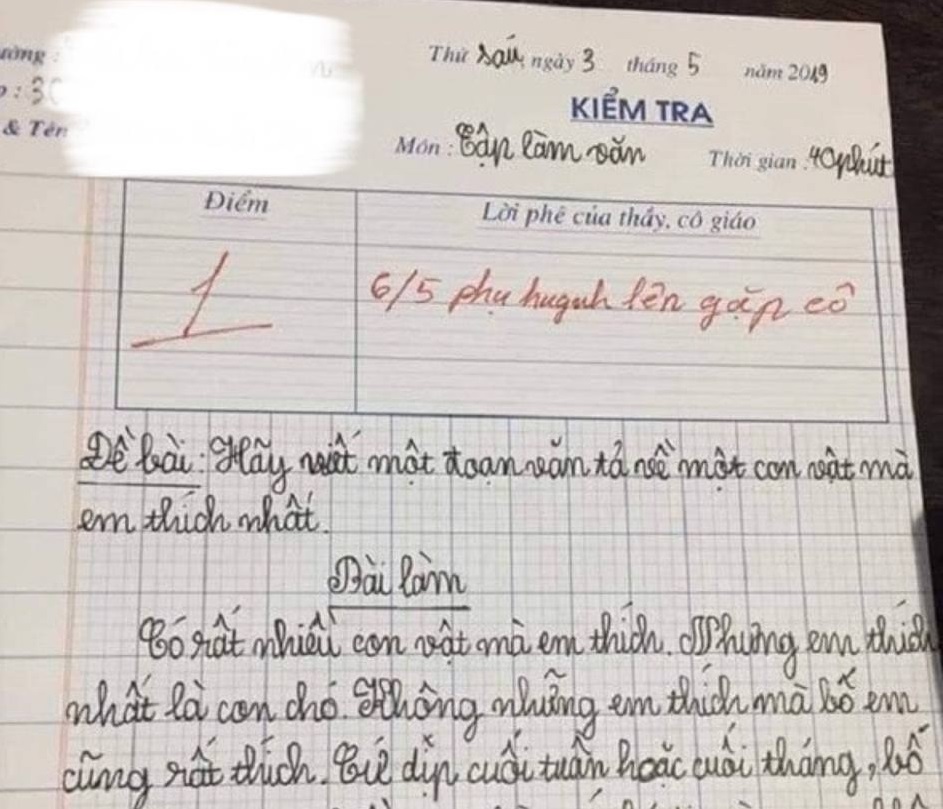Mặc dù em học sinh đã làm đúng yêu cầu đề bài nhưng vẫn bị cô giáo cho điểm thấp và nhận xét "Chưa đạt yêu cầu".