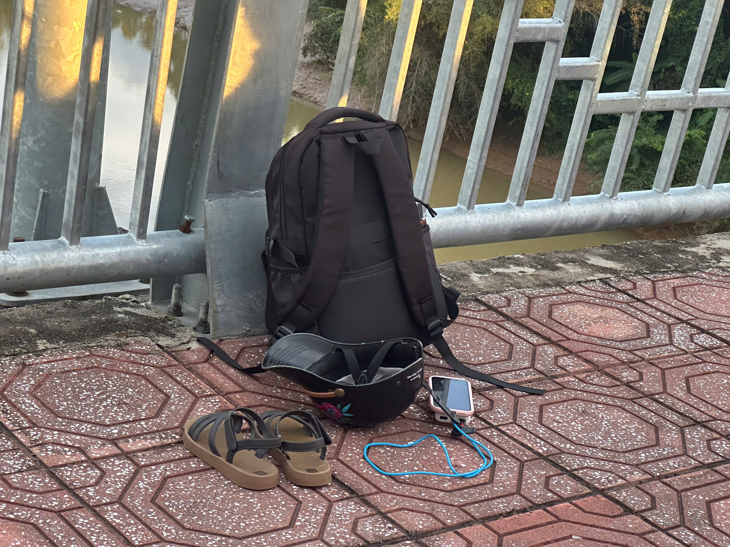 Cô gái sắp xếp đồ đạc gọn gàng trước khi gieo mình xuống sông