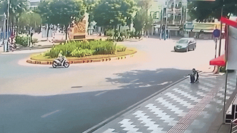 Tài xế ô tô con không đi theo hướng đúng vòng xuyến mà rẽ tắt, đã trực tiếp đâm bay người đi xe máy giữa giao lộ.