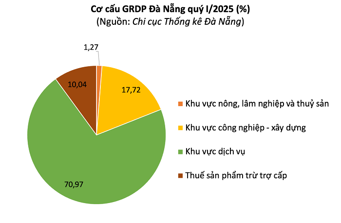 Cơ cấu GRDP quý I/2025. (Nguồn: AM tổng hợp từ Chi cục Thống kê Đà Nẵng). |