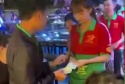 Đoạn clip ghi lại cảnh người phụ nữ đang đóng hàng lúc 2h50 rạng sáng thì bất ngờ bị chồng lao ra đánh, đạp tới tấp, buộc một cô gái chứng kiến phải lao vào che chắn k...