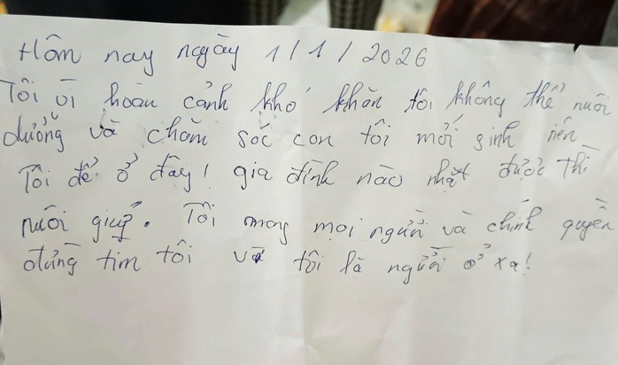 Bên cạnh đó, người dân còn thấy một lá thư được cho là của mẹ bé với nội dung: "Vì hoàn cảnh khó khăn, tôi không thể nuôi dưỡng và chăm sóc con vừa mới sinh nên tôi để ở đây. Gia đình nào nhặt được thì nuôi giúp. Tôi mong mọi người và chính quyền đừng tìm tôi vì tôi là người ở xa".