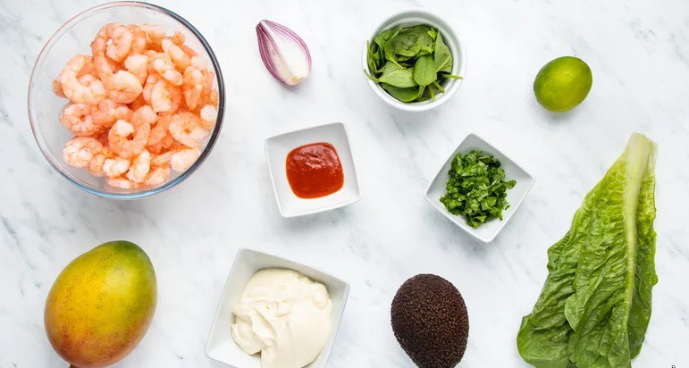 Món ăn là sự kết hợp giữa tôm ngon ngọt, xoài và bơ béo ngậy trộn với nước sốt kem hoàn hảo.