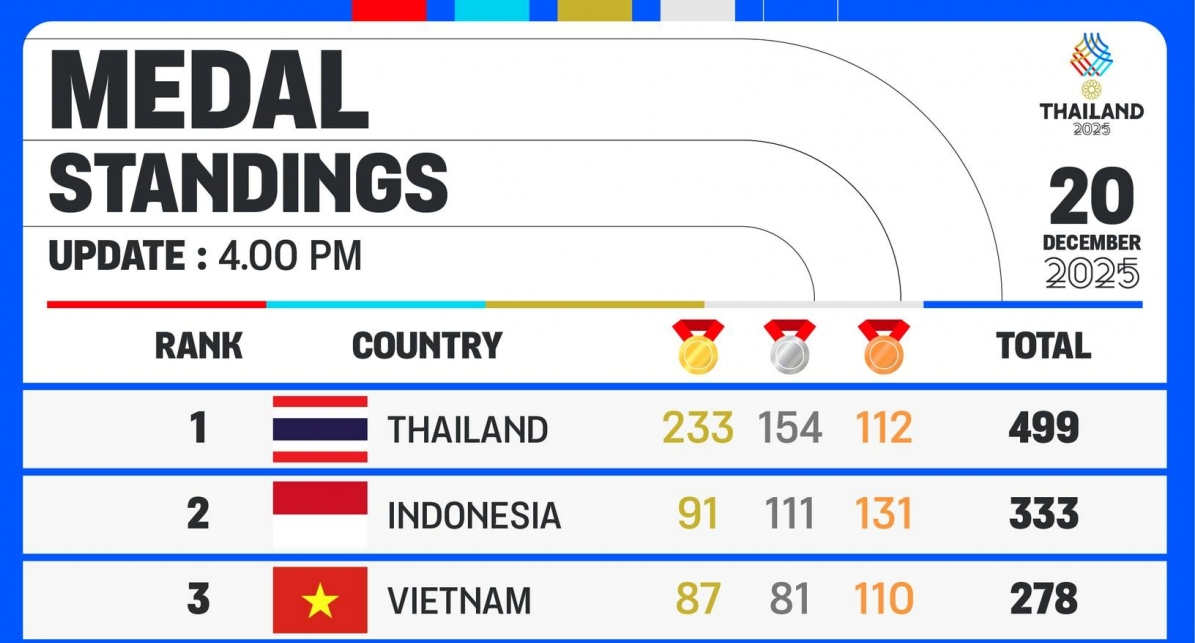 Bảng tổng sắp SEA Games 33 chung cuộc: Việt Nam đứng hạng 3