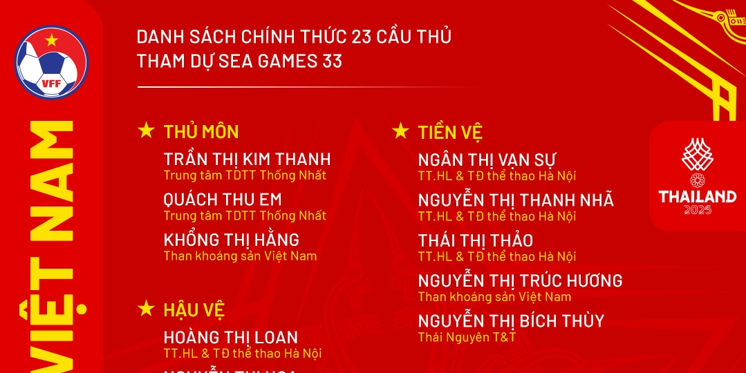 ĐT nữ Việt Nam chốt danh sách 23 cầu thủ tham dự SEA Games 33, quyết tâm tạo cột mốc lịch sử Đông Nam Á.