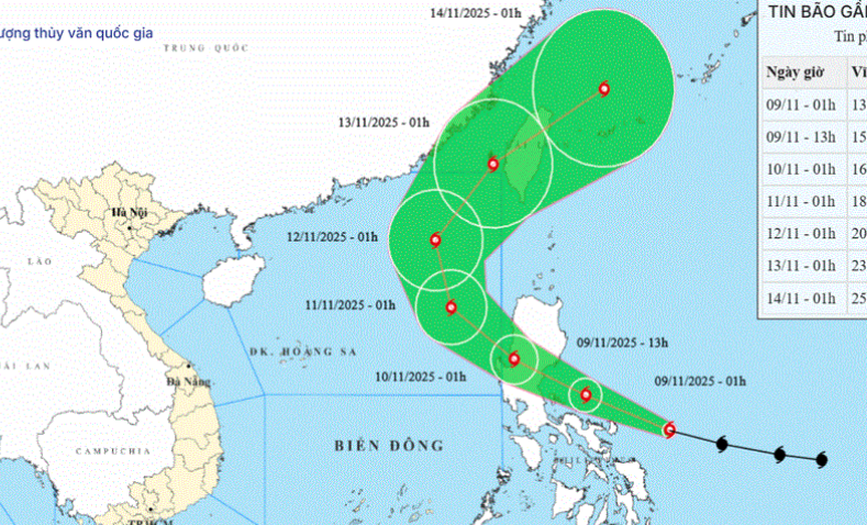Dự báo trong 24 - 60 giờ tới, bão số 11 mạnh cấp 13, giật cấp 16 trên khu vực Bắc Biển Đông, cách bán đảo Lôi Châu (Trung Quốc) khoảng 130km về phía Đông và di chuyển theo hướng Tây Tây Bắc, 20-25km/h và có khả năng mạnh thêm.