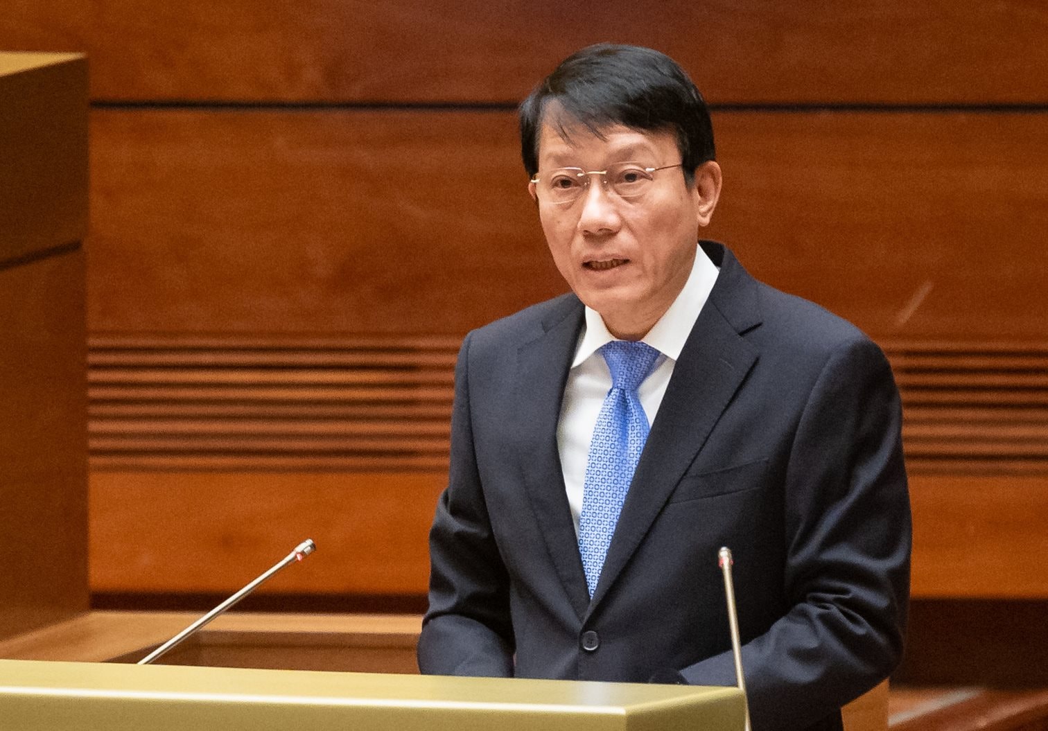 | Bộ trưởng Bộ Công an Lương Tam Quang trình bày Tờ trình Luật sửa đổi, bổ sung một số điều của 10 luật có liên quan đến an ninh, trật tự. |
