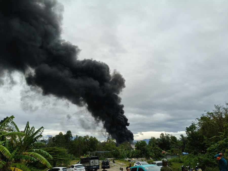 Do lửa lớn và khói đen bốc cao, lực lượng chức năng phải sử dụng mặt nạ phòng độc và thiết bị chuyên dụng để tiếp cận khu vực cháy.
