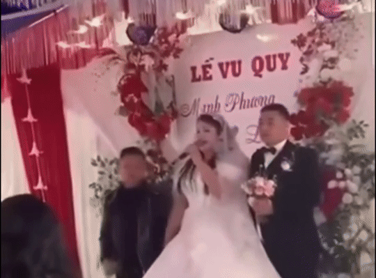 Mới đây, mạng xã hội xôn xao đoạn clip ghi lại sự việc cô dâu, chú rể bị ném mắm tôm trong ngày trọng đại. Trong clip, thời điểm cô dâu, chú rể cùng một người khác đang đứng trên sân khấu làm lễ, cô dâu cầm mic chia sẻ với mọi người thì bất ngờ bị ném túi mắm tôm vào người.