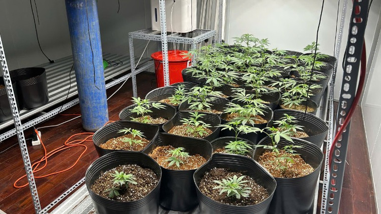 Tiếp tục kiểm tra căn phòng phía sau ngôi nhà, lực lượng Công an phát hiện 51 cây cần sa đang được nuôi trồng tại đây, bố trí trong không gian kín với hệ thống chiếu sáng, tưới nước phục vụ việc trồng, chăm sóc cây cần sa.