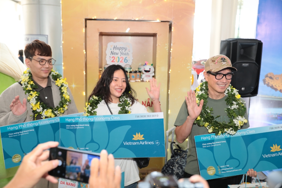 Văn hóa, Thể thao và Du lịch thành phố Đà Nẵng cho biết từ 07h00 - 08h00 ngày 01/01/2026 tại Ga đến nội địa – Cảng hàng không quốc tế Đà Nẵng, thành phố tổ chức chào chào đón chuyến bay VN157 từ Hà Nội do Hãng hàng không Vietnam Airlines khai thác, tạo dấu ấn bằng khoảnh khắc trao hoa và quà chúc mừng cho 03 du khách may mắn đầu tiên đặt chân đến thành phố trong thời khắc đầu năm, đồng thời tặng quà lưu niệm cho toàn bộ hành khách trên chuyến bay.