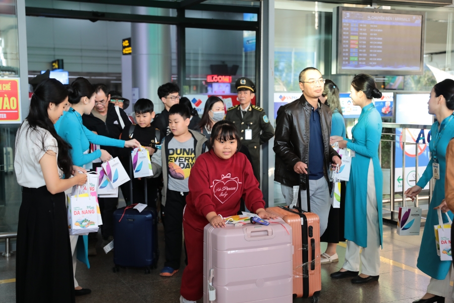Những hành khách may mắn đến Đà Nẵng ngày đầu tiên trong năm 2026. |