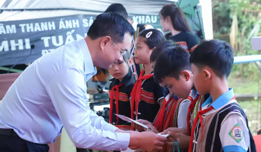 Ông Lê Ngọc Quang tặng quà cho học sinh. Ảnh: DNRT |
