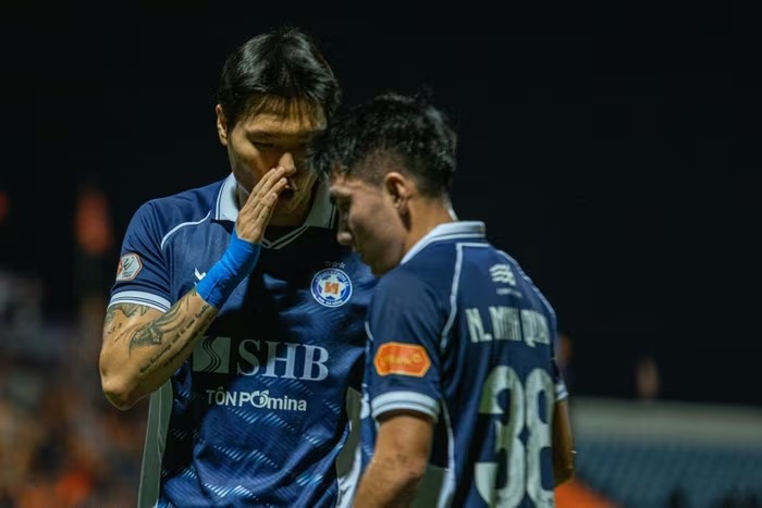 Ngay phút thứ 4, những hạn chế ấy bộc lộ rõ rệt. Hàng thủ SLNA đứng chôn chân khi Anh Tuấn thoải mái đi bóng xuyên qua 4-5 cầu thủ áo vàng trước khi tung cú xỏ háng vượt qua thủ môn Hữu Hậu, mở tỷ số cho Đà Nẵng. Bàn thua sớm khiến SLNA càng lúng túng trong triển khai bóng, thường xuyên mất nhịp ở khu vực giữa sân.