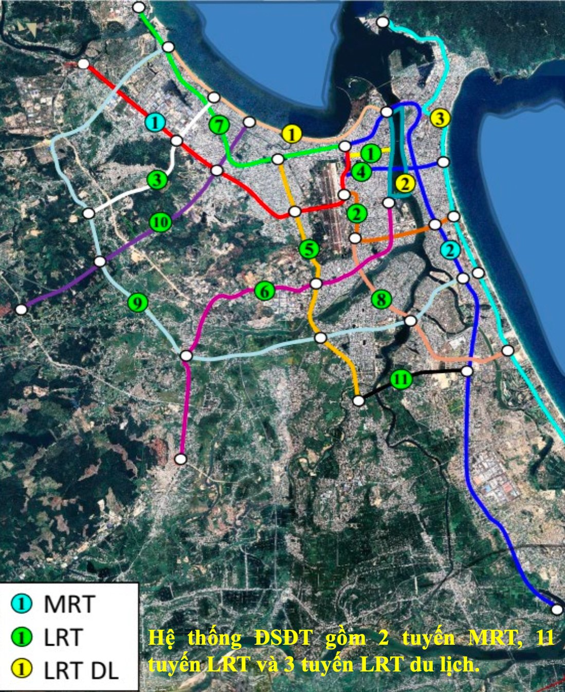 | TP. Đà Nẵng định hướng quy hoạch 16 trục đường sắt đô thị với chiều dài hơn 204km. Ảnh: Sở Xây dựng Đà Nẵng. |
