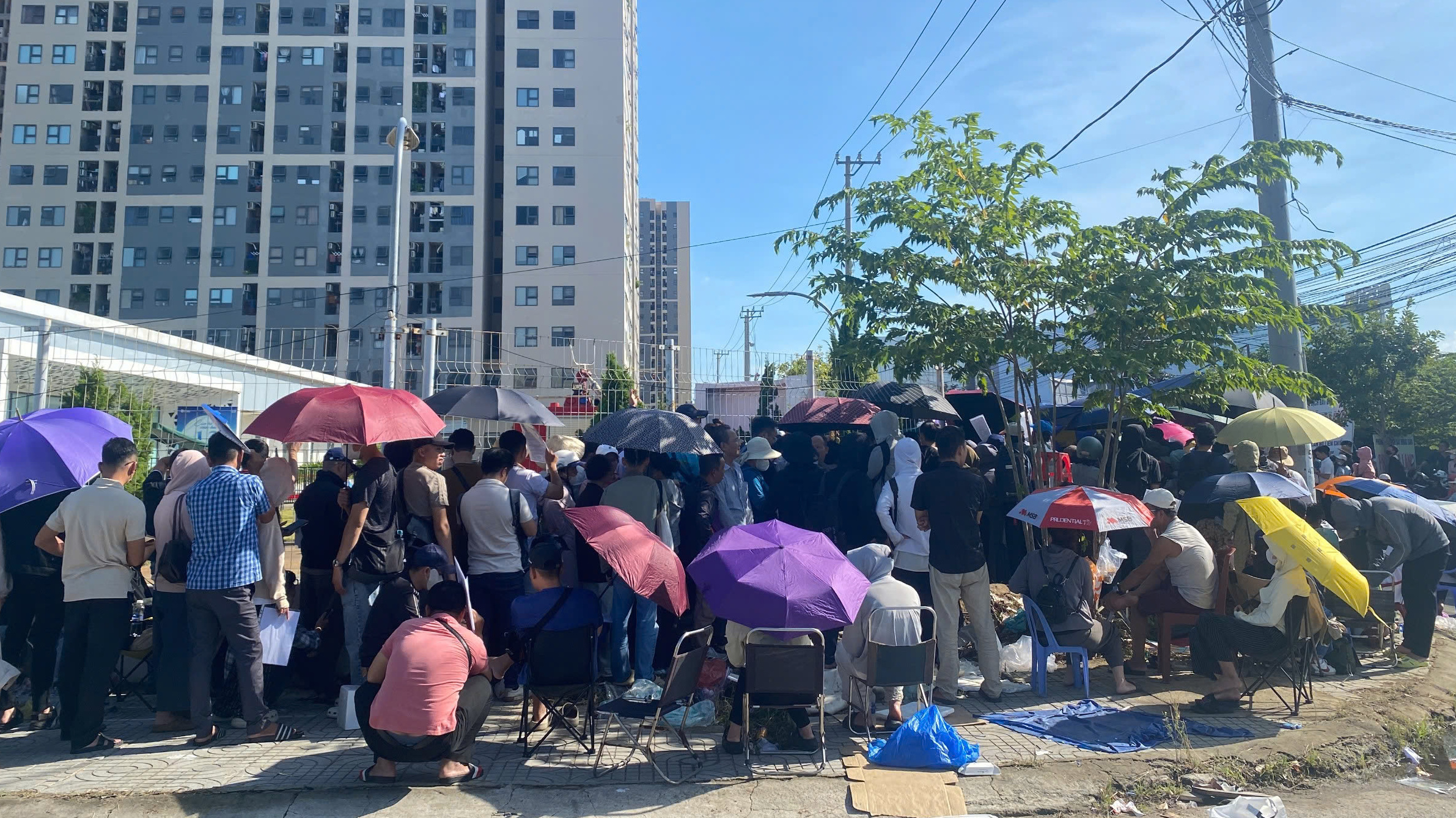Mặc dù 8 giờ 30 chủ đầu tư mới bắt đầu tiếp nhận, nhưng từ rất sớm, dòng người đã đổ về khu vực dự án, kéo dài ra tận ngoài đường. Nhiều người mang theo đồ ăn, nước uống, thậm chí ngủ qua đêm để giữ chỗ.