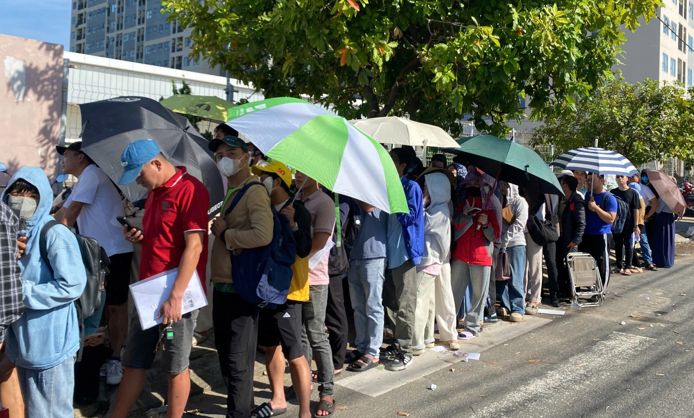 Chị N.T.H., công nhân tại khu công nghiệp Sơn Trà, cho biết đã đến từ sáng hôm trước nhưng sáng nay phải xếp hàng trở lại. Tương tự, anh P.H.H. (phường Hòa Khánh) chia sẻ nhiều người lo nộp hồ sơ muộn sẽ bị thiệt, dẫn đến cảnh chen lấn, bức xúc khi phải xếp lại thứ tự.
