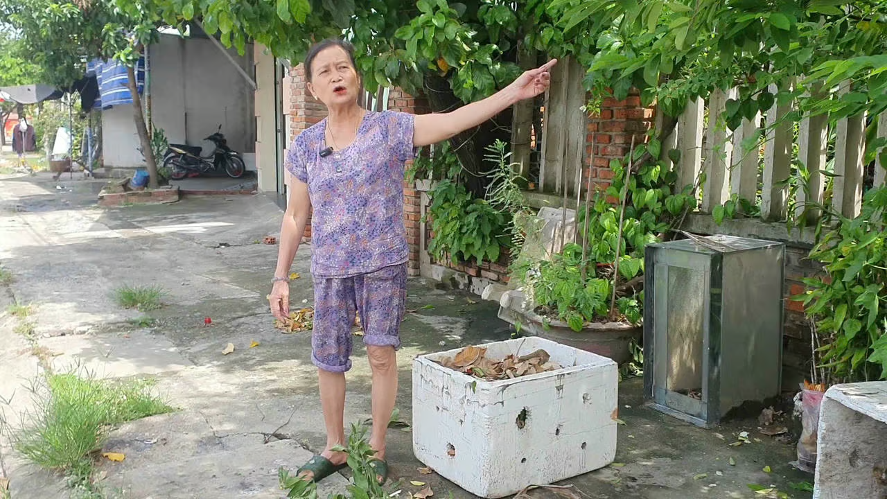 Bà Nguyễn Thị Đạo chia sẻ tình hình rác thải ùn ứ bốc mùi hôi. Ảnh: Nguyễn Tín. |