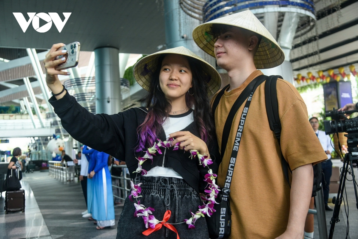 Khách du lịch chụp hình lưu niệm tại sân bay Đà Nẵng. |