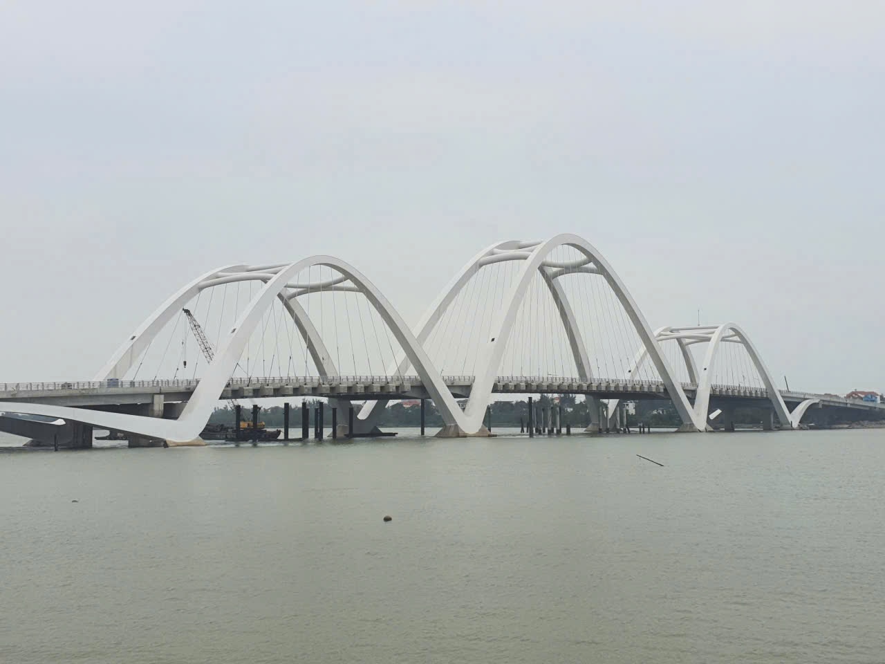 Phần cầu bắc qua sông Nhật Lệ cơ bản hoàn thành, chỉ còn một vài hạng mục phụ. |