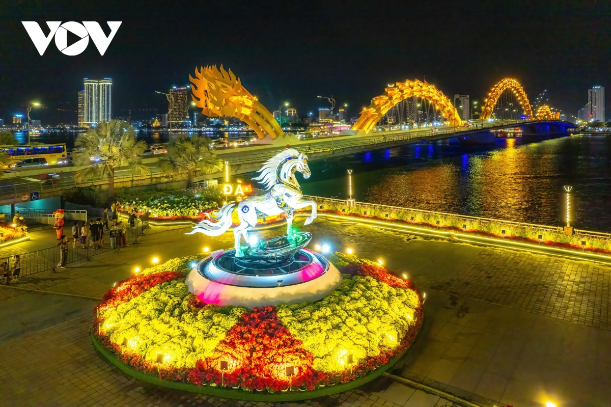 Linh vật ngựa tại bờ Tây cầu Rồng Đà Nẵng, điểm nhấn phục vụ người dân và du khách đến tham quan trong dịp Tết này |