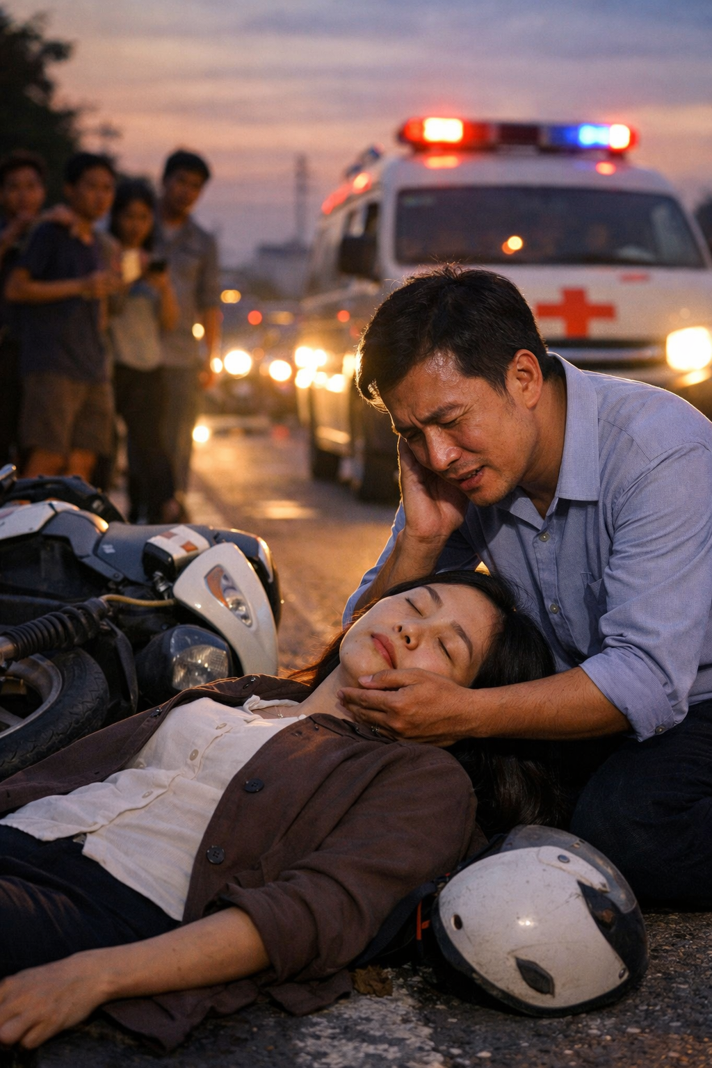 Khi chạy đến đoạn đường vắng gần khu công nghiệp, tôi thấy phía trước có đám đông tụ lại. Một người phụ nữ nằm gục bên chiếc xe máy đổ nghiêng, mũ bảo hiểm lăn ra xa. Người ta đứng quanh, xì xào bàn tán, nhưng không ai dám tiến lại gần. Tôi giảm ga, định lách qua cho nhanh. Trong đầu tôi lúc ấy chỉ có một suy nghĩ duy nhất: Đừng dính vào rắc rối.
