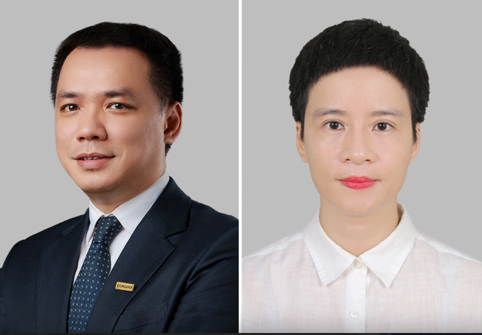 Tân Chủ tịch HĐQT Eximbank-bà Phạm Thị Huyền Trang (phải) và người tiền nhiệm - ông Nguyễn Cảnh Anh |