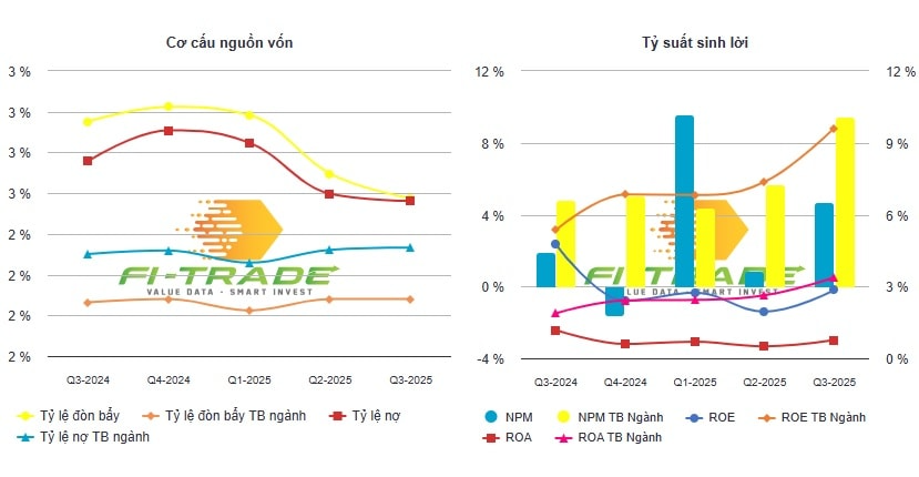 Vốn chủ sở hữu doanh nghiệp đạt 1.157,8 tỷ đồng, chiếm 28,8% tổng tài sản. Tuy nhiên, nợ phải trả ở mức 2.854 tỷ đồng, cao hơn gấp 2,5 lần vốn chủ sở hữu. Khi kết hợp với lượng phải thu và tồn kho lớn, rủi ro chu kỳ vốn kéo dài trở nên hiện hữu.