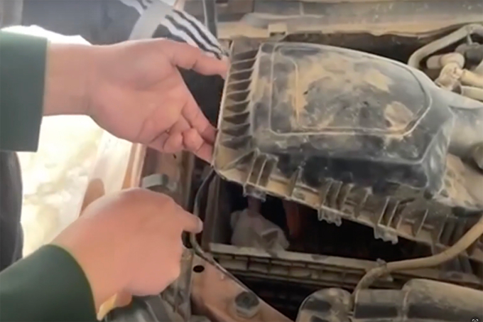 Hộp đựng lọc gió của ôtô bán tải được Thủy mở ra, giấu 7 cây vàng bên trong. Ảnh: Hùng Lê |