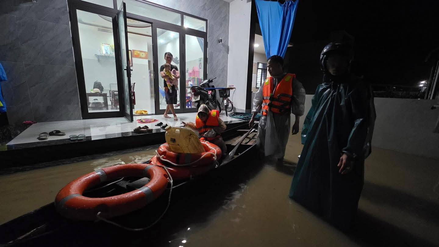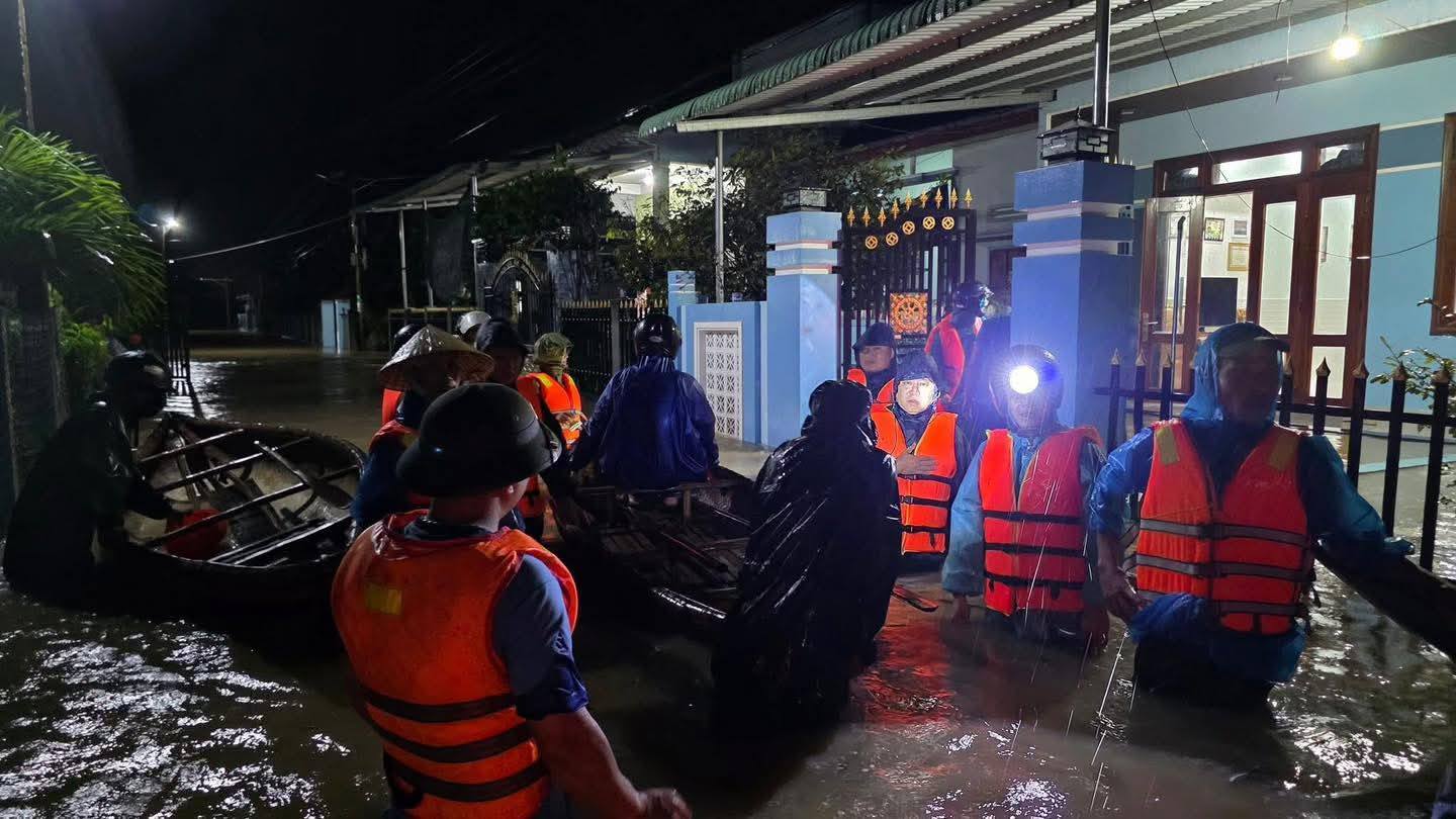 Lực lượng chức năng của xã Xuân Phú cùng với sự hỗ trợ của Bộ Chỉ huy Quân sự thành phố Đà Nẵng, Lữ đoàn 574 ứng cứu người dân trong đêm |