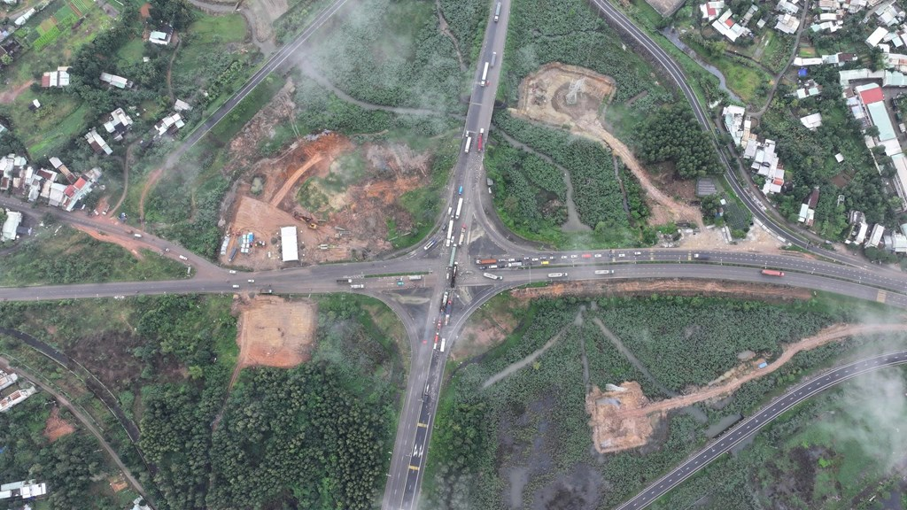 Hiện trạng Nút giao Quốc lộ 14B với Cao tốc Đà Nẵng - Quảng Ngãi nhìn từ trên cao. Ảnh: Quốc Dũng - TTXVN |
