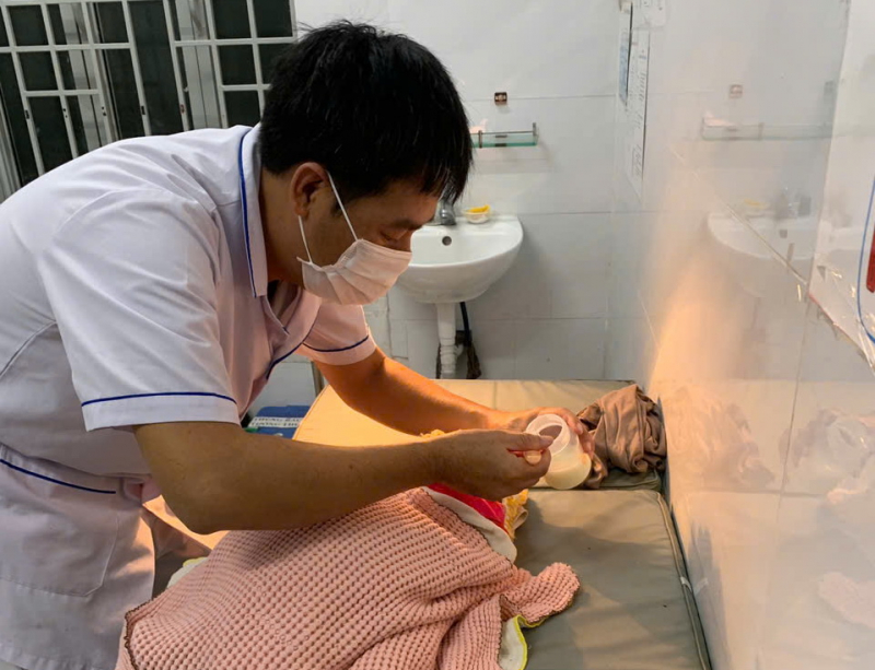 Bé gái sơ sinh bị bỏ rơi được nhân viên Trạm Y tế Vĩnh Hiệp chăm sóc tích cực ngay sau khi tiếp nhận. |