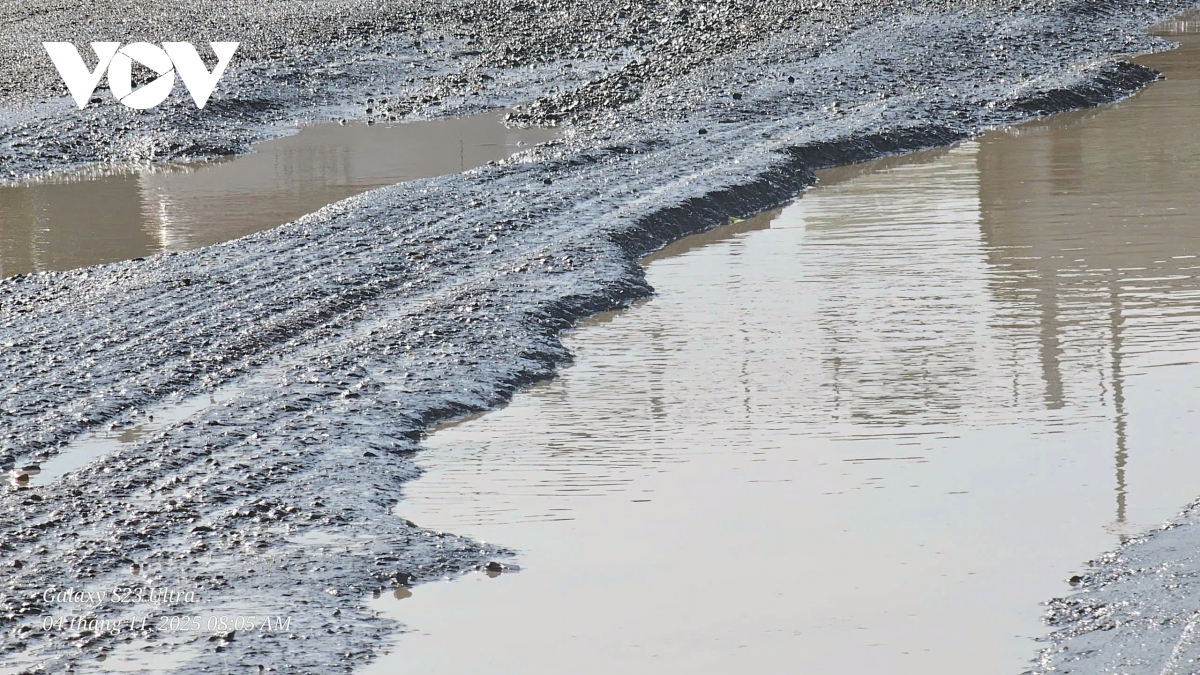 Trời mưa, nước đọng thành vũng tại các ổ gà gây mất an toàn giao thông. Các đoạn đường hư hỏng khu vực nội đô có lượng người, phương tiện qua lại rất lớn, nhất là xe tải, xe ben, xe container trọng tải lớn, xe du lịch....