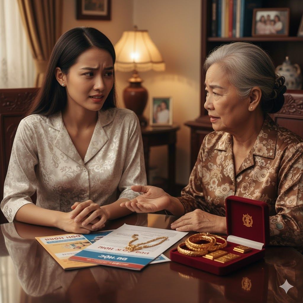 Tôi biết, nếu từ chối thẳng thừng, mối quan hệ mẹ chồng - nàng dâu chắc chắn sẽ rạn nứt. Mẹ sẽ nghĩ tôi ích kỷ, coi trọng đồng tiền hơn tình cảm gia đình. Nhưng nếu đồng ý, tôi biết chắc số vàng này sẽ "một đi không trở lại". Trong bối cảnh giá vàng nhảy múa như hiện nay, việc đòi lại đúng số lượng vàng đã cho mượn từ hai người già không có thu nhập là điều bất khả thi.
