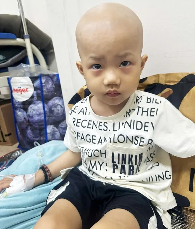 Trong căn phòng trọ nhỏ tại phường Tăng Nhơn Phú (TPHCM), vợ chồng chị Trần Thị Bảo Châu (sinh năm 1994) và anh Huỳnh Thanh Sang (sinh năm 1990, cùng ngụ xã Tân Phú, tỉnh Vĩnh Long) đang ngày đêm túc trực bên giường bệnh của con trai út. Bé Huỳnh Thiên Phúc tuy mới 4 tuổi (ảnh, sinh năm 2021) nhưng đã phải trải qua những tháng ngày chống chọi với căn bệnh ung thư não giai đoạn 4.