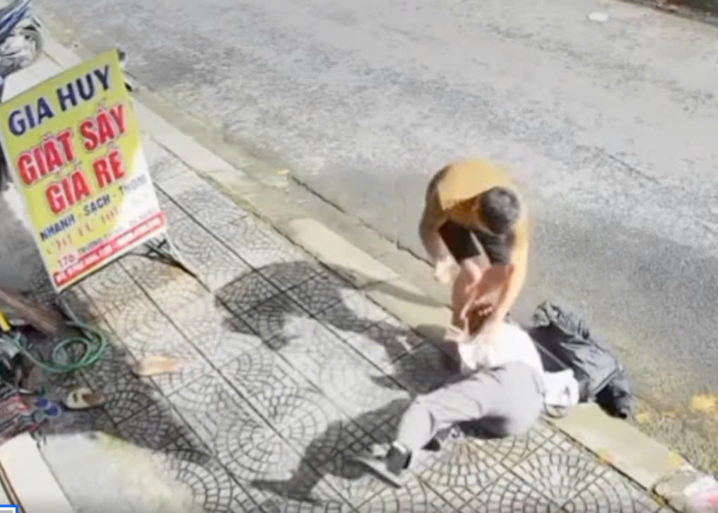 Bị tấn công bất ngờ, người phụ nữ liên tục kêu cứu rồi ngã gục. Một lúc sau, người đi đường phát hiện, chạy đến tri hô thì người đàn ông mới bỏ chạy.