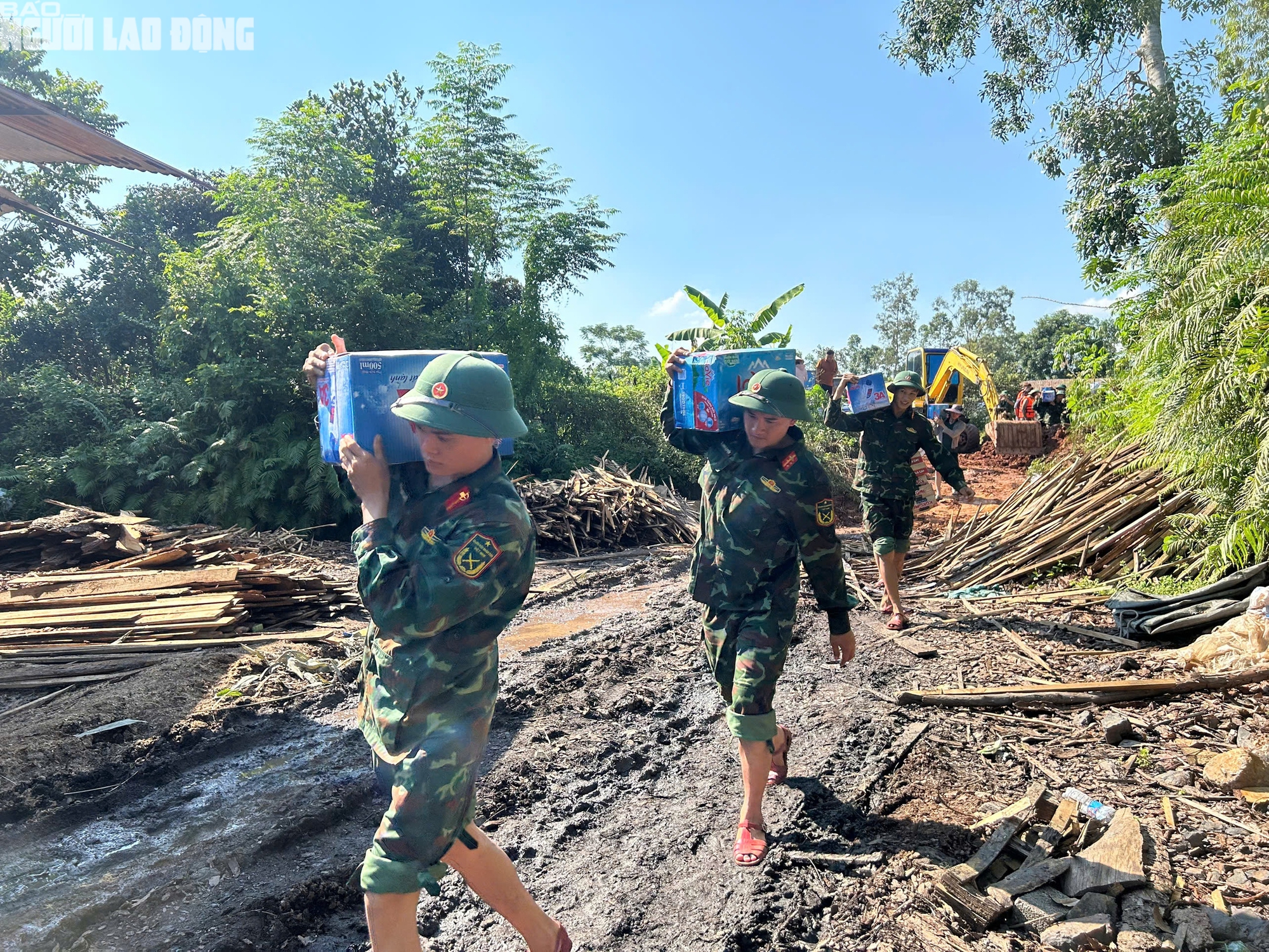 Bộ đội được huy động vận chuyển hàng cứu trợ đến điểm tập kết để xuồng máy, ca-nô vận chuyển đến khu vực bị cô lập |