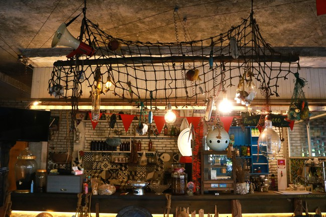 Toàn bộ không gian quán: từ bàn ghế, khung cửa, cho đến biển hiệu… đều được anh Long tự tay tạo nên từ rác nhặt ở bãi biển Tân Trà. Sau mỗi đợt bão, mưa lớn, khi rác dạt vào bờ, anh chị lại cùng nhau đi nhặt. Ban đầu chỉ đơn giản là làm sạch môi trường, nhưng càng làm, anh Long càng trăn trở: “Nếu rác cứ nhiều thế này, nhặt mãi cũng không xuể. Tại sao không thử biến chúng thành thứ có ích?”