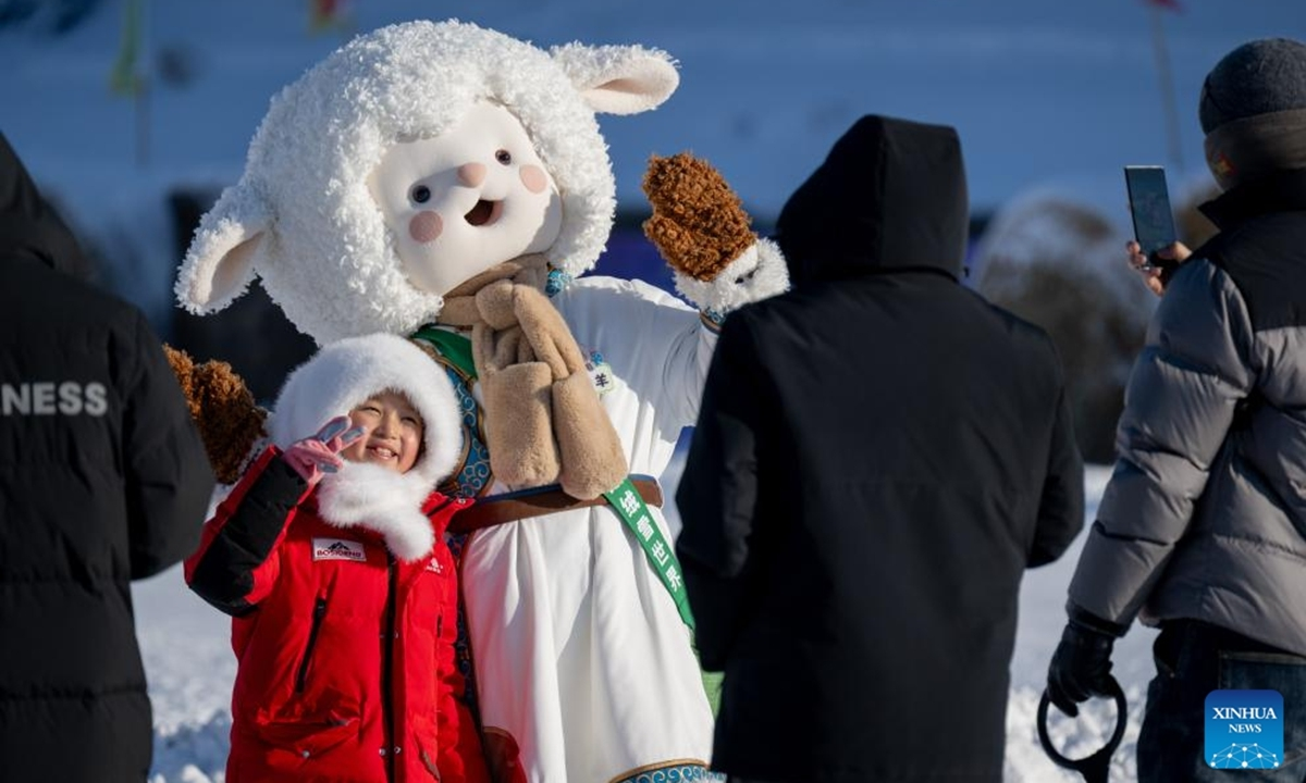 Một em nhỏ tạo dáng chụp ảnh với nhân vật hoạt hình trong lễ khai mạc Hội chợ Băng Tuyết Nadam lần thứ 21 của Khu tự trị Nội Mông, miền Bắc Trung Quốc, ngày 21/12. Ảnh: Tân Hoa xã |