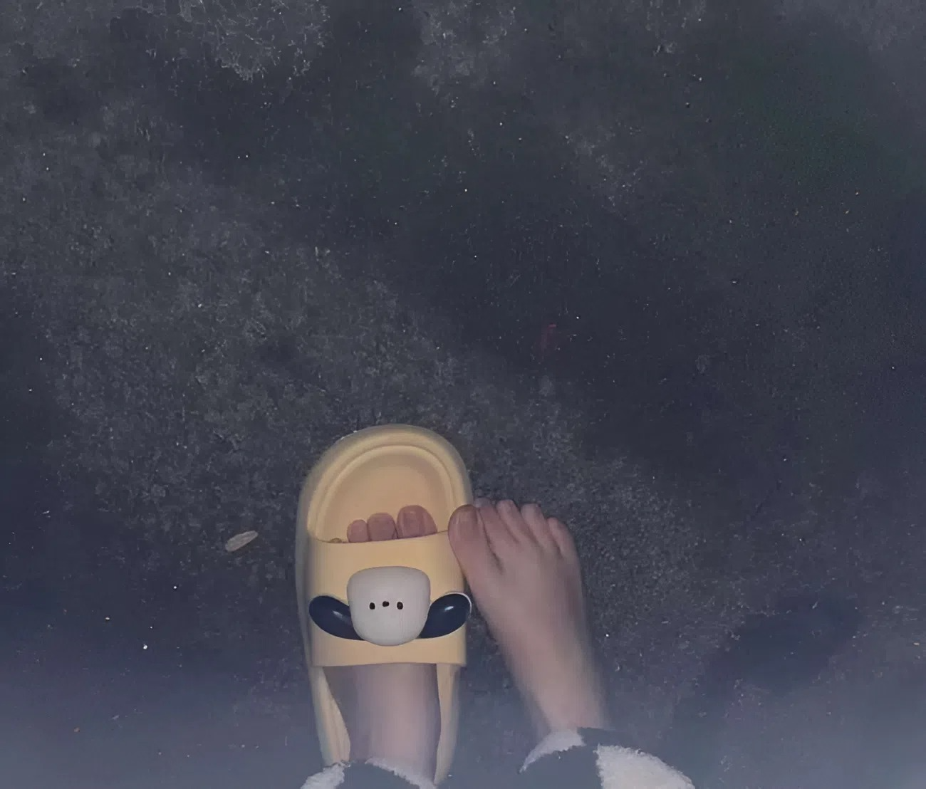 Cô gái trong bộ đồ ngủ, đi một chiếc dép lê, rời khỏi nhà giữa trời lạnh. (Ảnh: Aboluowang) |