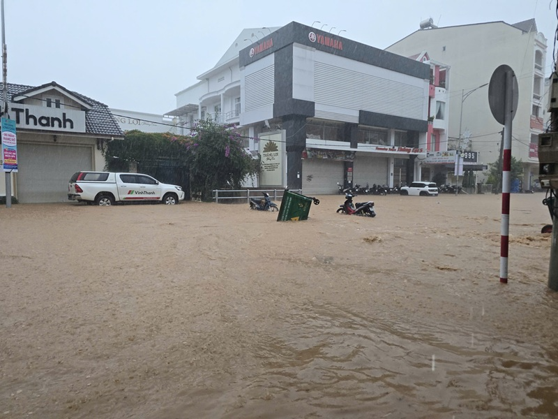 Mưa lớn kéo dài khiến nhiều tuyến đường ở các phường thuộc TP Đà Lạt cũ ngập cục bộ. |