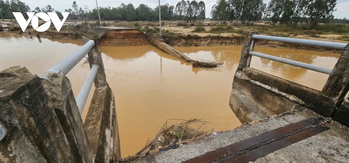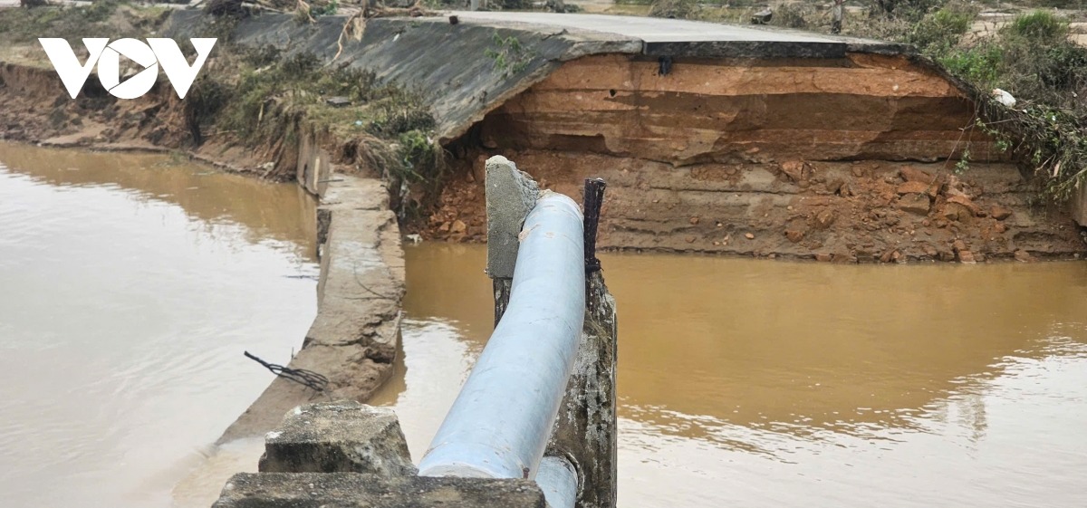 Đường dẫn 2 đầu cầu bà Ngân bị lũ cuốn trôi |