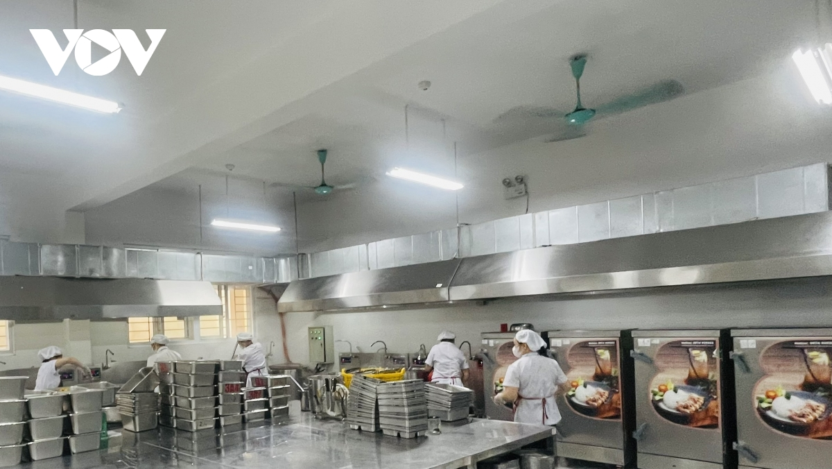 Khâu chế biến cũng được kiểm soát chặt chẽ. Nhà trường yêu cầu thực phẩm phải được sơ chế, nấu chín ngay trong ngày, đảm bảo vệ sinh, an toàn. Quy trình bếp một chiều được tuân thủ nghiêm ngặt, tách biệt thực phẩm sống và chín.