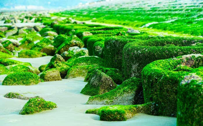 Mê mẩn trước cảnh rêu xanh phủ kín bờ kè biển Hà Tĩnh