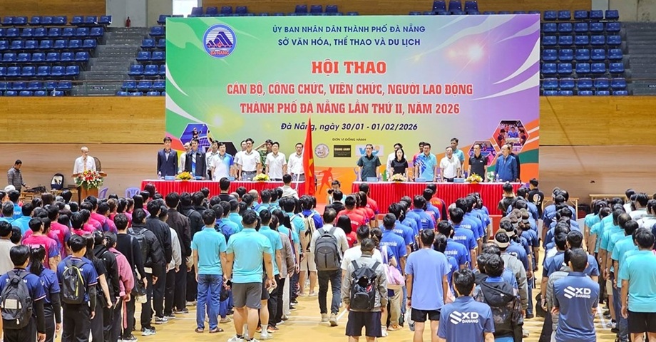 Sáng 31.1, Hội thao cán bộ, công chức, viên chức, người lao động TP. Đà Nẵng lần thứ II, năm 2026 chính thức khai mạc tại Cung Thể thao Tiên Sơn, thu hút gần 700 vận động viên đến từ 20 cơ quan, đơn vị trên địa bàn thành phố tham gia tranh tài.