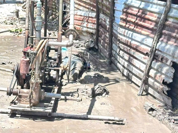 Trong lúc di dời giàn khoan đóng cừ làm hàng rào cho nhà dân ở xã Hòa Bình, thiết bị chạm vào đường dây điện khiến hai người đàn ông bị giật, tử vong tại chỗ, trưa 16/3.