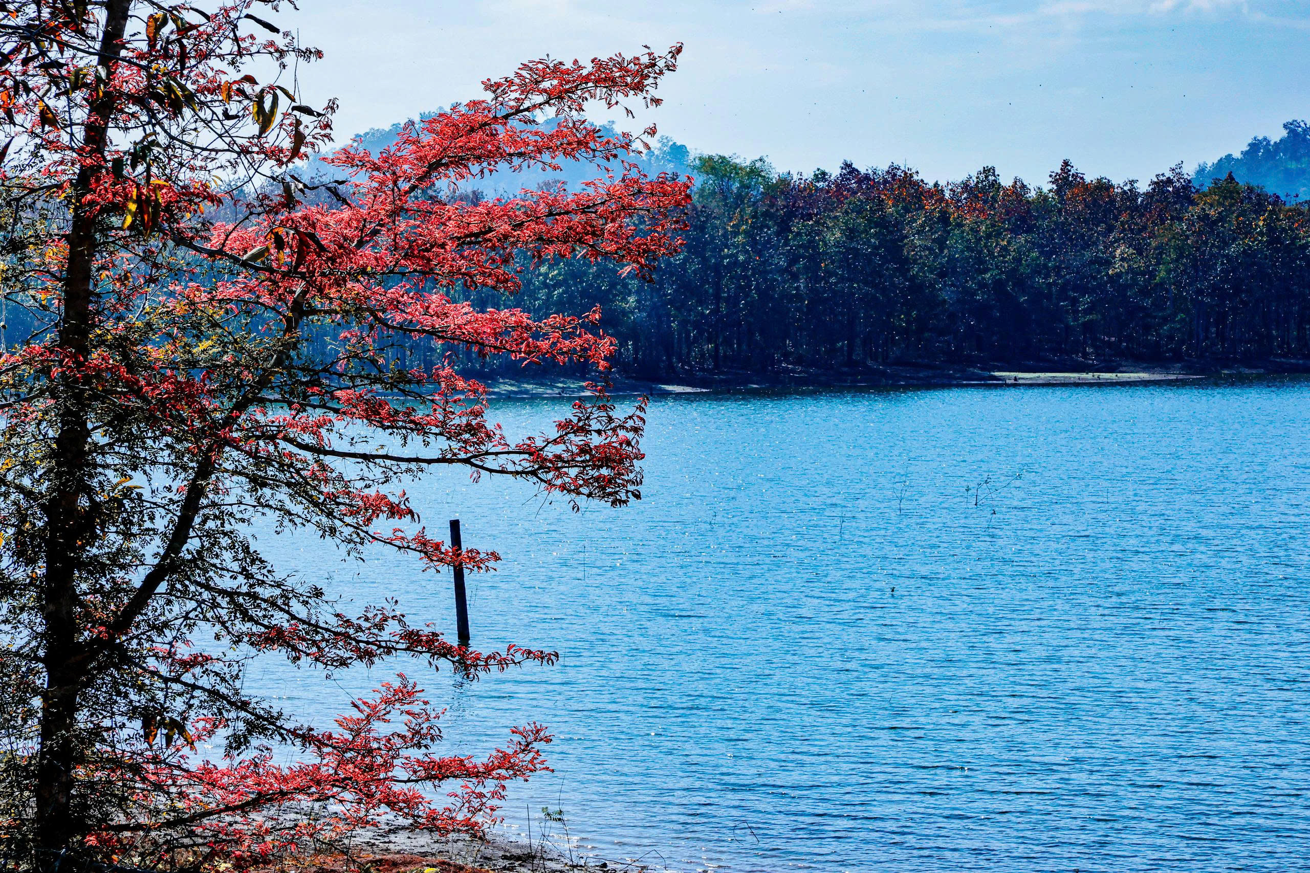 Vào mùa thay lá, rừng khộp lớn nhất Việt Nam - Vườn Quốc gia Yók Đôn khoe sắc đỏ rực rỡ, tựa như một bức tranh sống động, độc đáo.