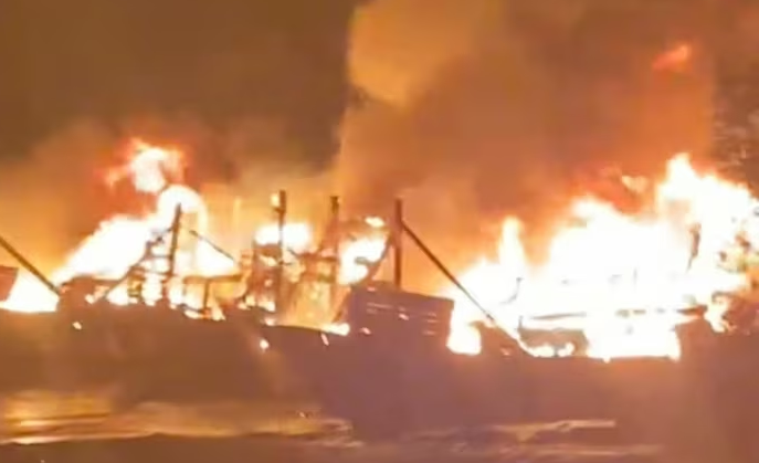 Tàu cá Đà Nẵng bất ngờ bốc cháy, 55 thuyền viên nhảy xuống biển thoát thân