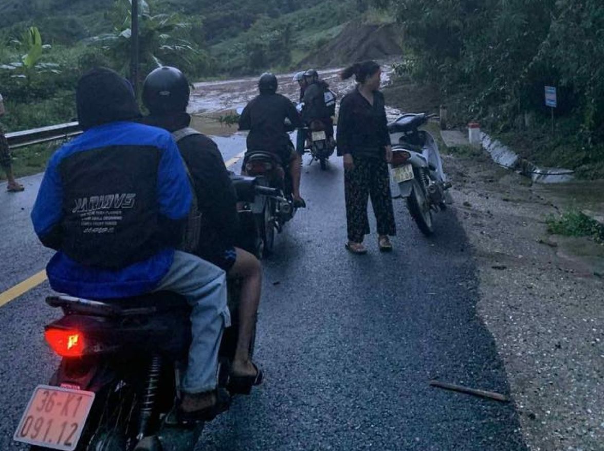 Thanh Hóa: Mưa lũ gây sạt lở, ách tắc Quốc lộ 217
