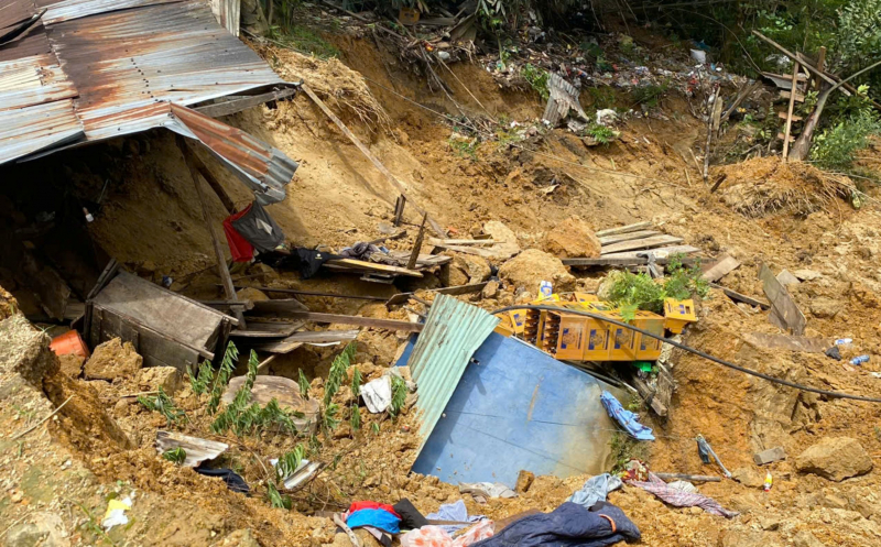 Do mưa lớn kéo dài đã làm sạt lở đất, kéo theo 2 ngôi nhà bếp, 2 nhà vệ sinh của 2 hộ dân tại thôn Arooi, xã Hùng Sơn, Đà Nẵng bị cuốn trôi hoàn toàn, nhiều vật dụng sinh hoạt, vật nuôi bị vùi lấp dưới đống đổ nát. Ước tính thiệt hại khoảng 400 triệu đồng.
